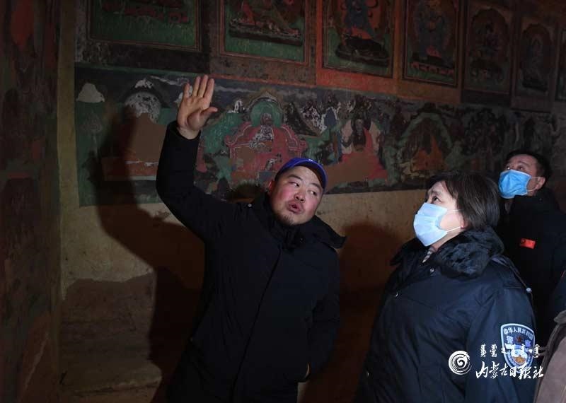 布小林沿著山體走進(jìn)石窟,察看壁畫現(xiàn)存狀況,了解石窟保護(hù)修復(fù)、學(xué)術(shù)研究以及遺址保護(hù)規(guī)劃和方案制定情況,要求對(duì)阿爾寨石窟實(shí)施整體保護(hù),做好考古發(fā)掘研究,挖掘其文化內(nèi)涵,發(fā)揮石窟的歷史文化價(jià)值。