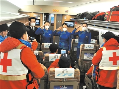 作為連通全國(guó)的運(yùn)輸動(dòng)脈,在完成常規(guī)運(yùn)輸任務(wù)的基礎(chǔ)上,高鐵列車還承擔(dān)起了運(yùn)送醫(yī)務(wù)人員、醫(yī)療用品和保障物資的特別任務(wù)。內(nèi)蒙古援鄂醫(yī)療隊(duì)員兩批次乘坐G2438次列車從北京中轉(zhuǎn)赴武漢;五批次乘坐“草原動(dòng)車”由鄂爾多斯回到呼和浩特。“送英雄出征,接英雄回家”,七次運(yùn)輸任務(wù),高鐵車隊(duì)以最高禮遇和精心的服務(wù),贏得醫(yī)療隊(duì)員們的紛紛好評(píng)?!爸x謝你們,出發(fā)時(shí)為我們送行,歸來時(shí)為我們唱起凱旋之歌?!贬t(yī)療隊(duì)隊(duì)員李紅娟緊緊握住列車長(zhǎng)張雨的手說。