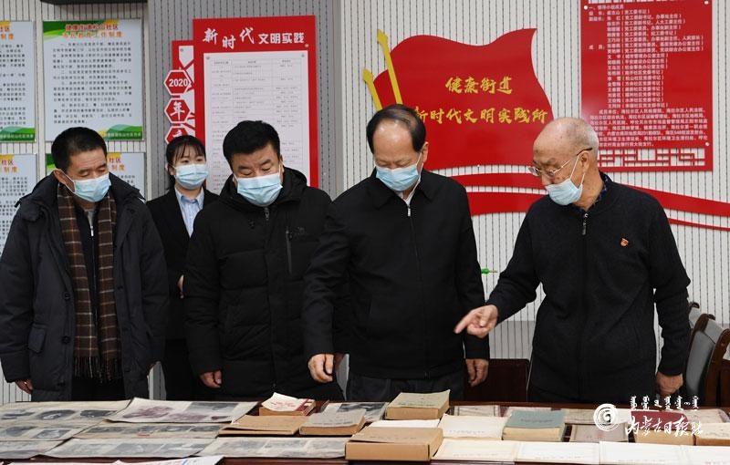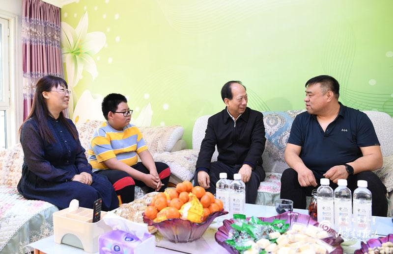 在海拉爾區(qū)神寶小區(qū),石泰峰與自治區(qū)勞模于景斌拉起家常,詳細了解他十幾年如一日堅守生產(chǎn)一線學技術(shù)、練本領(lǐng)、搞創(chuàng)新的先進事跡。石泰峰說,實踐出真知,只要肯鉆研、行行出狀元,新一代的工人和廣大勞動者要向勞模學習,弘揚勞模精神,充分發(fā)揮有知識、懂技術(shù)、善創(chuàng)新的優(yōu)勢,不斷在工作崗位上創(chuàng)造新的業(yè)績、作出更大貢獻。在天驕家園小區(qū),石泰峰與老黨員祁寶良相談甚歡,他一邊翻看老照片和回憶錄,一邊與老人共同回顧崢嶸歲月。石泰峰說,老黨員老同志的革命經(jīng)歷是我們黨寶貴的精神財富,我們要多給年輕人講一講,讓他們銘記光榮革命歷史,珍惜今天幸福生活,更加奮發(fā)有為地建功新時代。石泰峰叮囑老人保重身體,祝福老人健康長壽。
