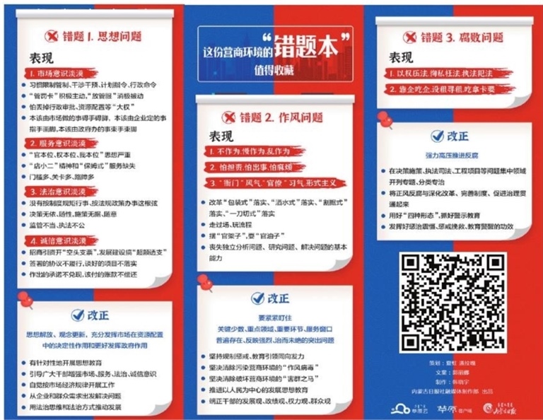 優(yōu)化營商環(huán)境,離不開社會各界的大力支持和積極參與,讓全社會知道我們正在做什么、還要做什么,才能有效強信心、暖人心、聚民心。要加大宣傳力度,全方位、常態(tài)化開展優(yōu)化營商環(huán)境政策法規(guī)宣傳。要發(fā)揮好輿論監(jiān)督作用,通過曝光一批反面典型警示一片,讓廣大干部心有所戒、行有所止,讓破壞營商環(huán)境的人和事無藏身之處、無立錐之地。要大力選樹先進典型,放大示范帶動效應(yīng),讓見賢思齊、比學(xué)趕超成為一種良好風(fēng)尚,在全社會形成“人人都是營商環(huán)境、事事都是營商環(huán)境、處處都是營商環(huán)境”的濃厚氛圍。