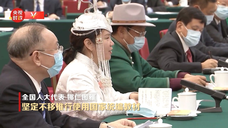 娜仁圖雅代表是巴彥淖爾市烏拉特前旗蒙古族小學(xué)教師,今年能和總書記面對面交流,她的內(nèi)心十分激動(dòng)?!皩W(xué)習(xí)使用國家通用語言文字,有利于孩子們實(shí)現(xiàn)更大夢想。在會上,我說‘我是蒙古族,但我首先是中國人’??倳泴Υ耸挚隙?,他說,要認(rèn)真做好推廣普及國家通用語言文字工作,全面推行使用國家統(tǒng)編教材?!蹦热蕡D雅說。