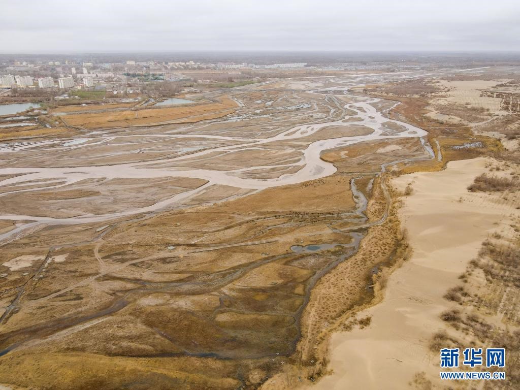 新疆且末縣城與塔克拉瑪干沙漠之間隔著車爾臣河(3月31日攝,無人機(jī)照片)。新華社記者 高晗 攝