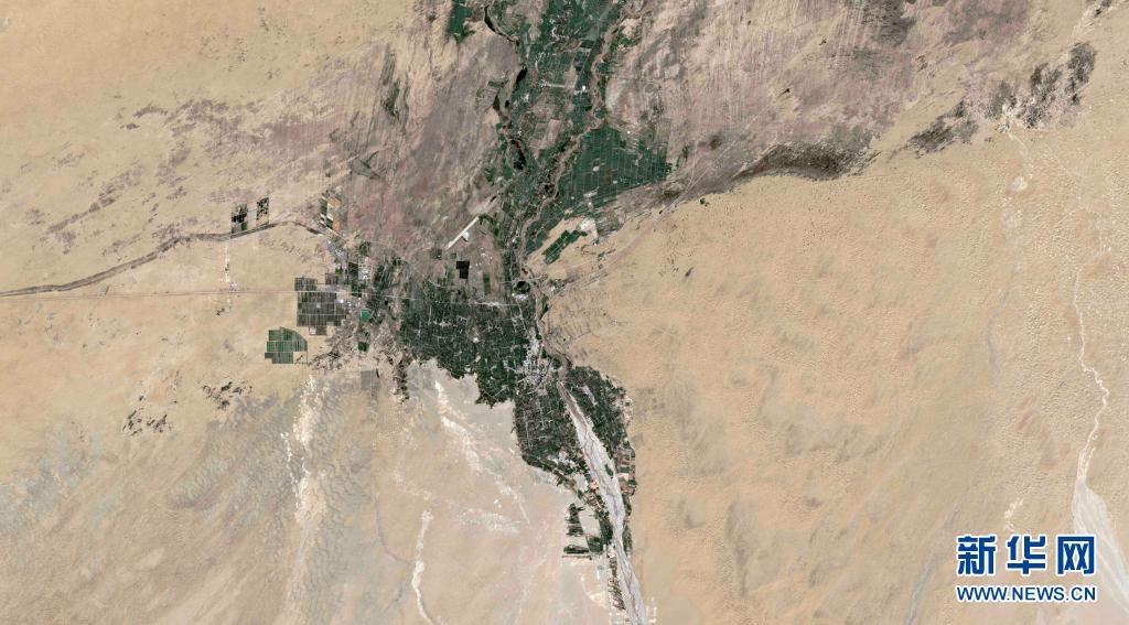 這是新疆且末縣河?xùn)|治沙站的衛(wèi)星圖片。新華社發(fā)(新華社衛(wèi)星新聞實(shí)驗(yàn)室、瞭望數(shù)據(jù)媒體實(shí)驗(yàn)室聯(lián)合供圖)
