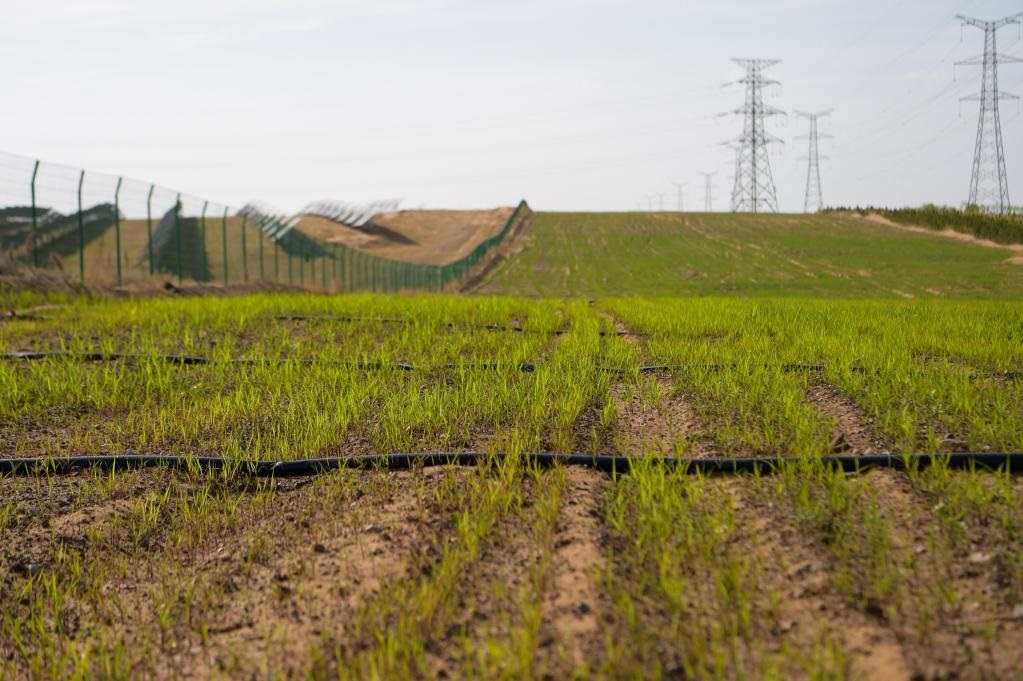 達拉特旗光伏發(fā)電應用領(lǐng)跑基地的牧草。新華社記者 趙澤輝攝