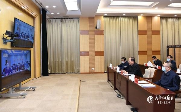 10月24日,自治區(qū)黨委書(shū)記、人大常委會(huì)主任石泰峰來(lái)到自治區(qū)疫情防控工作指揮部與二連浩特市視頻連線,了解應(yīng)對(duì)處置新冠肺炎疫情工作情況。內(nèi)蒙古日?qǐng)?bào)社融媒體記者袁永紅攝