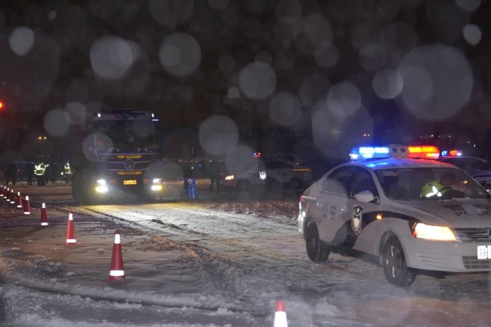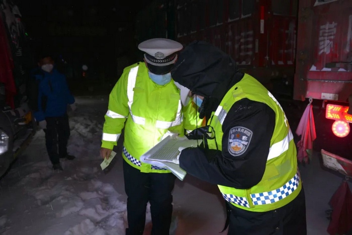 早上4時30分,經公安民警、防疫工作人員認真核對司乘人員48小時內核酸檢測陰性證明、車輛信息及編號等準備工作后,229輛大貨車按照20輛一組要求,在警車的護送下順利駛出二連浩特市。