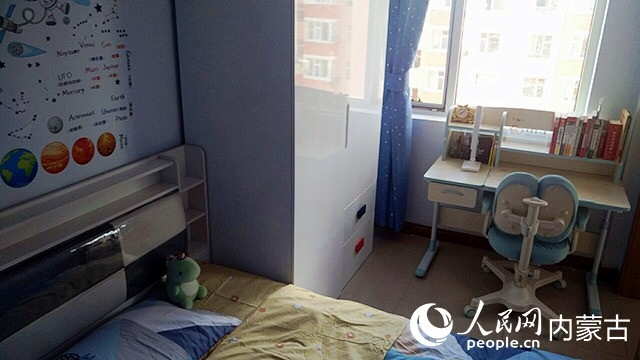在對(duì)原有住房進(jìn)行規(guī)劃、設(shè)計(jì)后,施工隊(duì)開(kāi)始裝修,并配備必要的家具、臥具和學(xué)習(xí)生活用品。歷時(shí)半個(gè)多月,一間以藍(lán)色為主色調(diào)的小屋建成了?,F(xiàn)在,屬于浩博的那一半臥室,泛黃的臥室墻壁被粉刷成淡藍(lán)色,換了新的小床和衣柜,新添置的書(shū)桌上擺滿(mǎn)了課外書(shū),看起來(lái)整潔又溫馨。