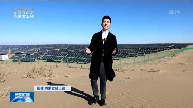 崔健內(nèi)蒙古臺記者:這里是中國第七大沙漠——庫布其沙漠,我現(xiàn)在所在的區(qū)域是鄂爾多斯市達拉特光伏發(fā)電應用領跑者基地,也是全國最大的沙漠生態(tài)光伏發(fā)電站、全國最大光伏治沙基地。通過航拍鏡頭我們看到,這片區(qū)域的光伏板很壯觀,這里全部建成后年發(fā)電量可達40億度,年減排320萬噸二氧化碳,相當于種下2900萬棵樹。