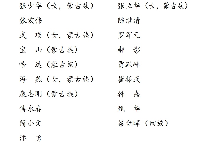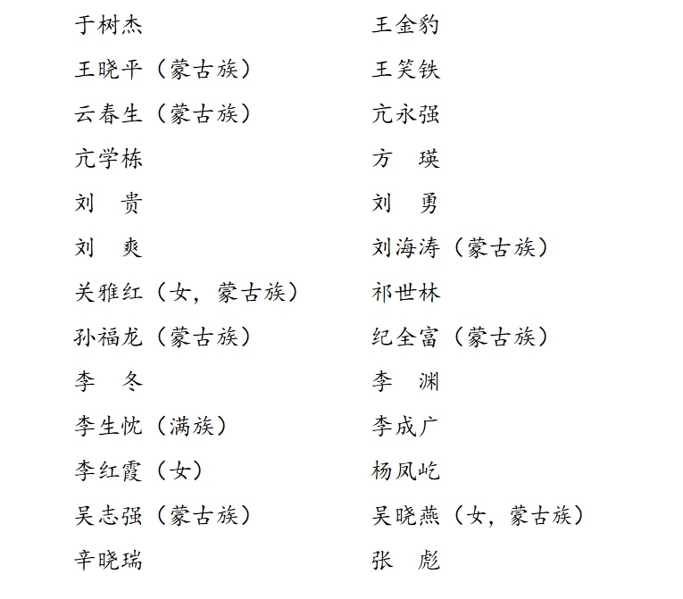 中國共產(chǎn)黨內(nèi)蒙古自治區(qū)第十一屆紀(jì)律檢查委員會委員名單(45人)