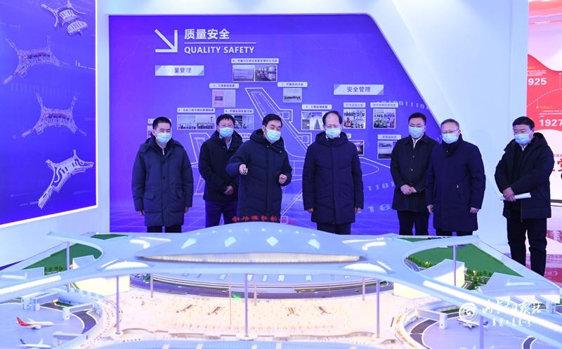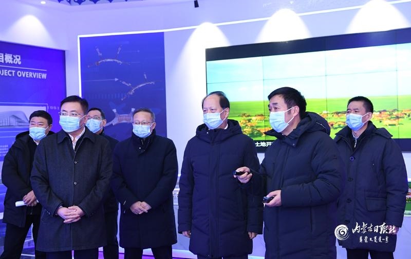 1月18日下午,自治區(qū)黨委書記、人大常委會主任石泰峰在呼和浩特新機場智慧展廳,聽取新機場主體建設(shè)情況介紹。內(nèi)蒙古日報社融媒體記者 袁永紅 攝