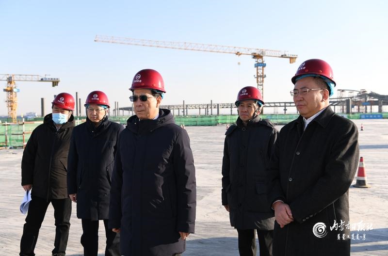 隨后,石泰峰來到新機場航站區(qū)建設(shè)現(xiàn)場,深入考察航站樓等相關(guān)工程建設(shè)進度,詳細了解工程配套情況。他強調(diào),要緊盯序時進度目標,掛圖作戰(zhàn)、跑表計時,在保證質(zhì)量和安全的前提下,全力加快新機場建設(shè)進度,確保如期完成建設(shè)任務(wù)。對項目推進中遇到的實際問題,市委和政府要強化擔(dān)當意識、服務(wù)意識,積極協(xié)調(diào)各方研究解決。在聽取呼和浩特市區(qū)域空間規(guī)劃及交通體系規(guī)劃等情況介紹后,石泰峰強調(diào),城市建設(shè)發(fā)展一定要做到科學(xué)規(guī)劃,每個城市片區(qū)都要體現(xiàn)高質(zhì)量發(fā)展要求,確保功能優(yōu)化,實現(xiàn)產(chǎn)城融合,防止因規(guī)劃不科學(xué)留下敗筆。要充分發(fā)揮呼和浩特新機場對產(chǎn)業(yè)和區(qū)域發(fā)展的輻射帶動作用,高起點規(guī)劃建設(shè)現(xiàn)代化臨空經(jīng)濟區(qū)和空港城,做大做強航空物流、電子信息等產(chǎn)業(yè),積極培育航空總部、跨境電子商務(wù)等業(yè)態(tài),推動實現(xiàn)以航興城、以城促航。