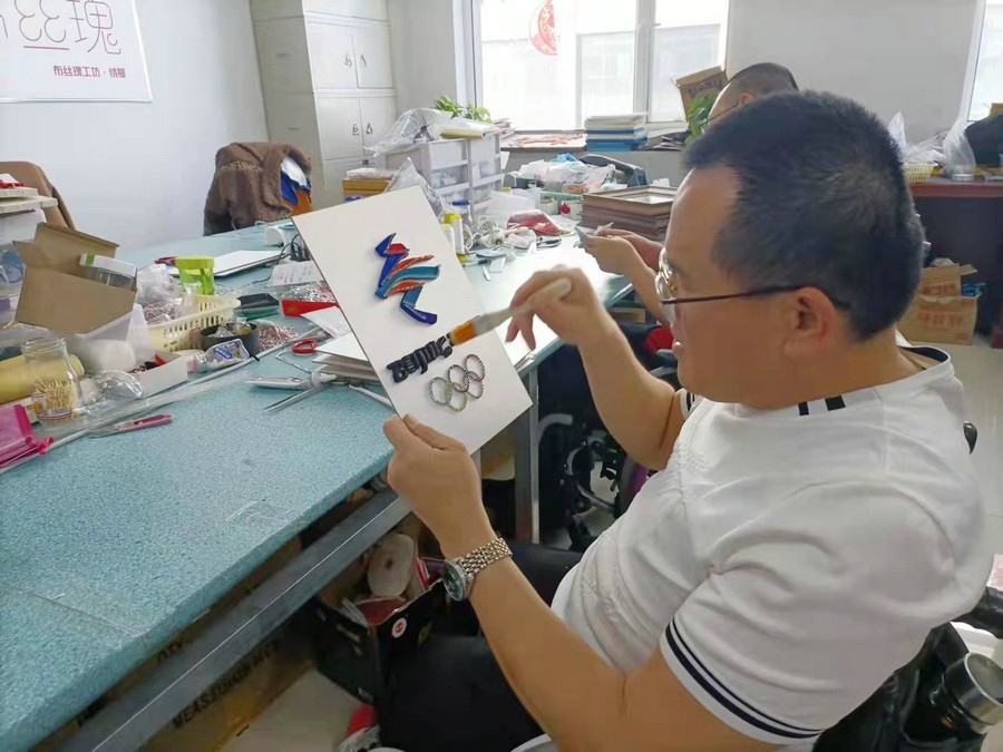 呼和浩特市殘聯(lián)相關(guān)負(fù)責(zé)人介紹,用盤扣工藝制作的北京冬奧會、冬殘奧會會徽,是將此工藝與服裝脫離開來,以裝飾畫的形式展現(xiàn)。中式盤扣具有紐帶和橋梁意義,借此表達內(nèi)蒙古殘疾人對北京冬奧會和冬殘奧會的關(guān)注,也讓內(nèi)蒙古殘疾人堅韌不拔、自強不息的精神以這個作品為紐帶傳播到世界各地。