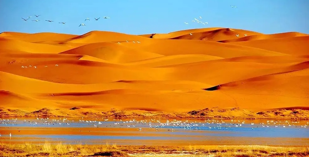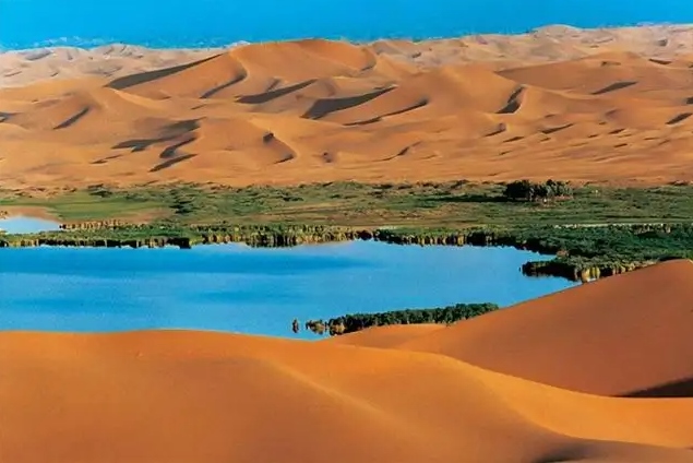 巴丹吉林沙漠年降水量不足40毫米,但是沙漠中的湖泊竟然多達(dá)100多個(gè)。高聳入云的沙山,神秘莫測(cè)的鳴沙,靜謐的湖泊、濕地,構(gòu)成了巴丹吉林沙漠獨(dú)特的迷人景觀,于2005年被《中國(guó)國(guó)家地理》雜志評(píng)為中國(guó)最美麗的沙漠,每年吸引了上萬(wàn)名國(guó)內(nèi)外游客前來(lái)觀光。