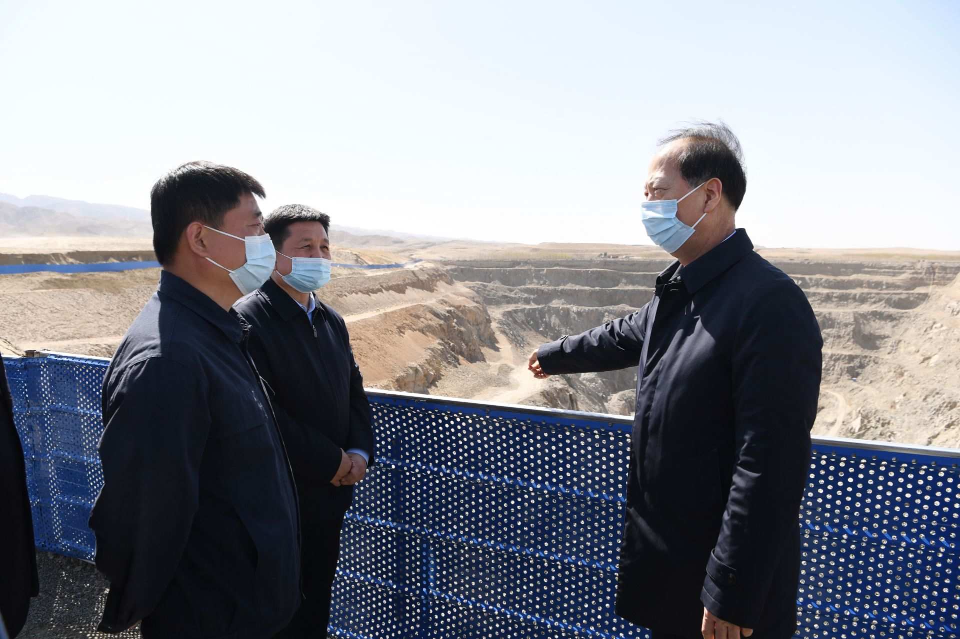 石泰峰首先來到華拓礦業(yè)公司阿力奔公忽洞鐵礦(原生金礦業(yè)公司),詳細了解越界開采、尾砂隨意堆放等問題及整改治理情況。看著鐵礦開采挖出的大坑,現(xiàn)場還不時刮起漫天黃沙,他嚴肅指出,這種置法律法規(guī)于不顧的野蠻行徑,破壞和影響的不僅僅是當?shù)氐纳鷳B(tài)環(huán)境,更是我國北方生態(tài)安全屏障、國家生態(tài)安全。他強調,維護生態(tài)安全是必須始終牢記在心的“國之大者”,不論是企業(yè)還是政府都不能為了追求短期利益而不算大賬、長遠賬,不能以犧牲生態(tài)環(huán)境為代價換取一時一地的經濟增長。各級各方面都要做生態(tài)安全屏障的建設者、守護者,決不能做破壞者。