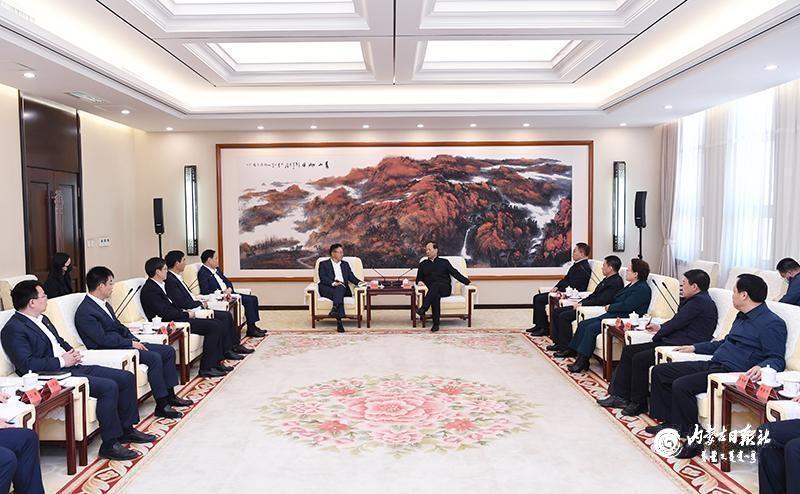 4月7日,自治區(qū)黨委書記、人大常委會(huì)主任石泰峰在呼和浩特會(huì)見TCL集團(tuán)、協(xié)鑫集團(tuán)和中環(huán)半導(dǎo)體企業(yè)負(fù)責(zé)人。內(nèi)蒙古日?qǐng)?bào)社融媒體記者 袁永紅 攝