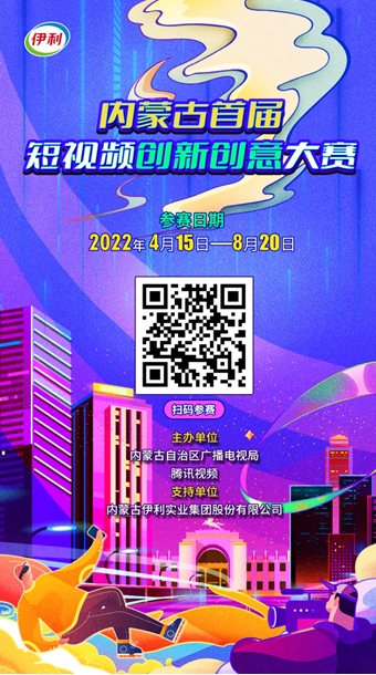 為進(jìn)一步推動(dòng)網(wǎng)絡(luò)視聽行業(yè)高質(zhì)量發(fā)展,充分發(fā)揮優(yōu)秀網(wǎng)絡(luò)視聽作品示范引領(lǐng)作用,激發(fā)網(wǎng)絡(luò)視聽創(chuàng)作創(chuàng)新活力,唱響新時(shí)代主旋律,壯大主流輿論,傳播正能量,內(nèi)蒙古自治區(qū)廣播電視局特舉辦“內(nèi)蒙古首屆短視頻創(chuàng)新創(chuàng)意大賽”。本次大賽以“奮進(jìn)新征程建功新時(shí)代亮麗內(nèi)蒙古”為主題,聯(lián)合騰訊視頻、內(nèi)蒙古伊利實(shí)業(yè)集團(tuán)股份有限公司共同舉辦。