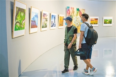 觀眾在觀看“亮麗北疆 向美而行‘伊利杯’內(nèi)蒙古風(fēng)光攝影展”。此次展覽共展出200件作品,既有獲獎作品,也有特約的名家作品。 記者 懷特烏勒斯 攝