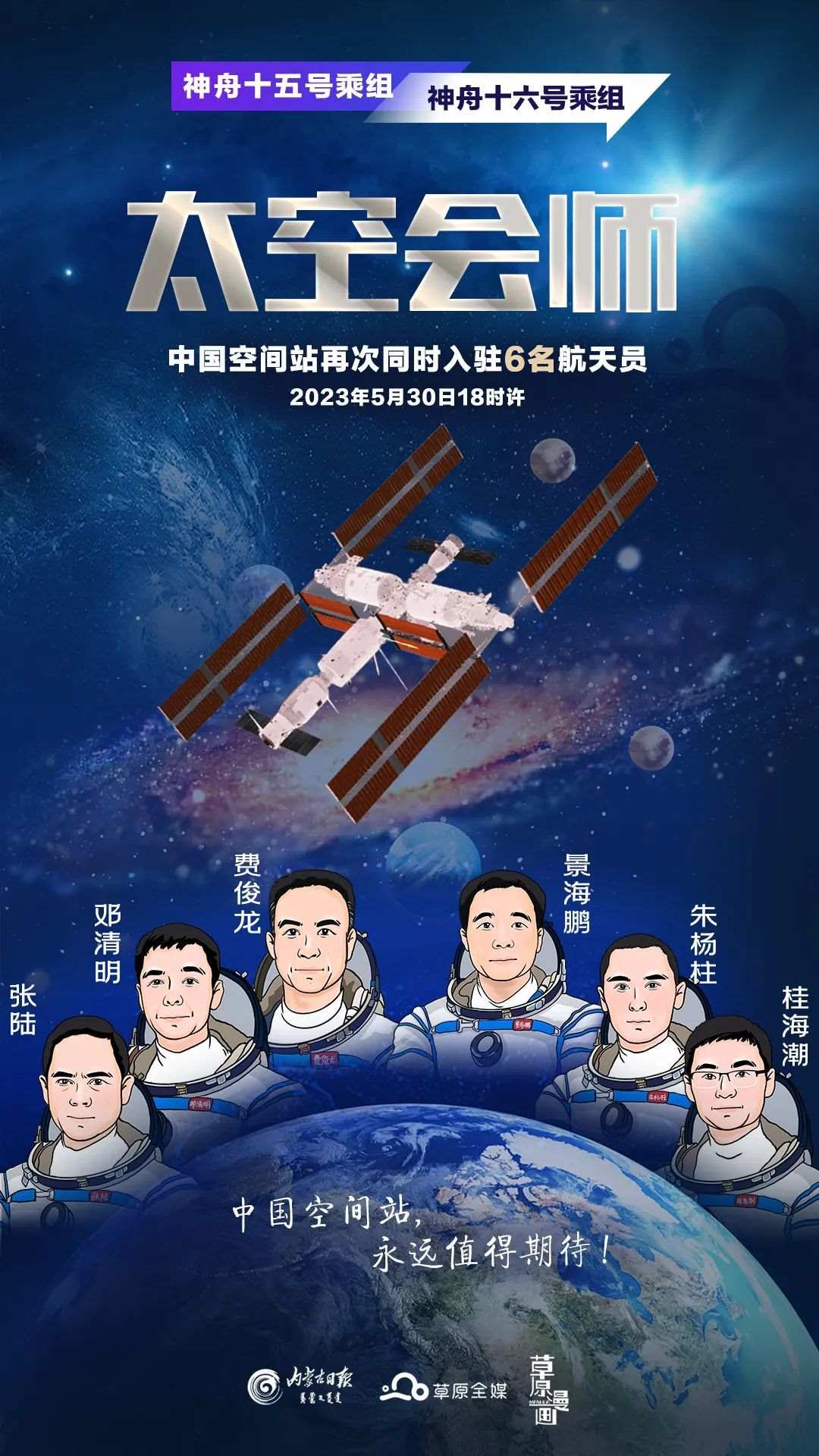 5月30日9時31分,神舟十六號載人飛船發(fā)射升空,“神十六”飛行乘組隨后在當日18時許與“神十五”乘組會師太空,拍下全家福。這也是中國空間站的第二次太空會師。幾天來,“神十六”飛行乘組三類航天員的全新組合引起網(wǎng)友廣泛討論。