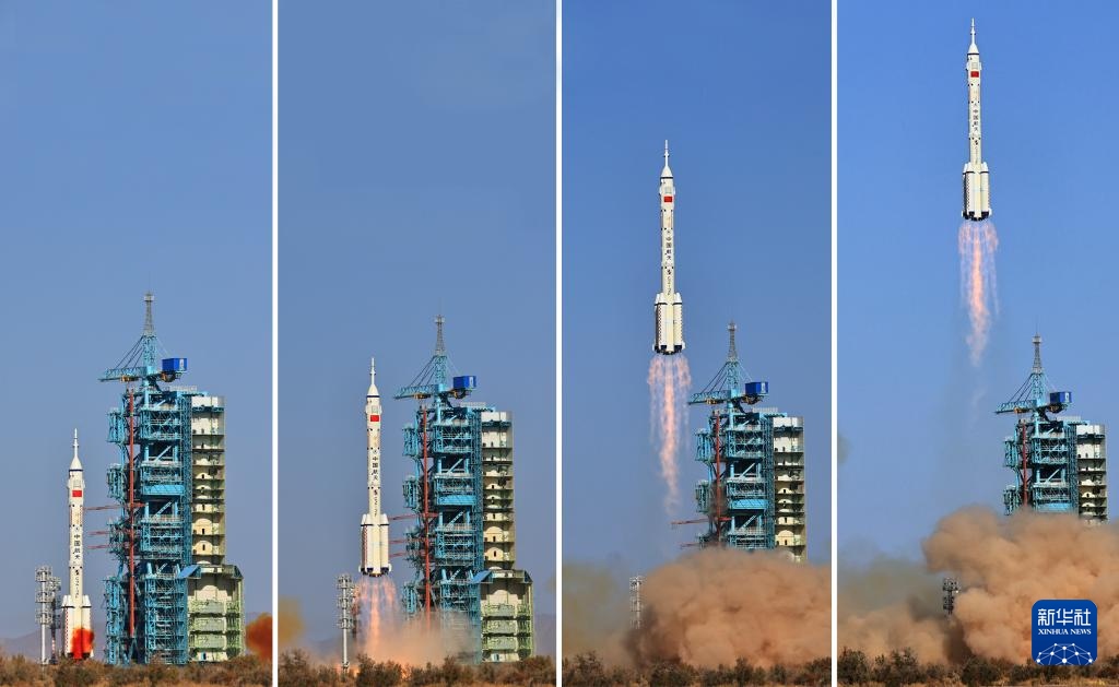 這是神舟十七號(hào)載人飛船發(fā)射升空過(guò)程(拼版照片,10月26日攝)。