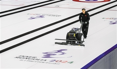 12月7日,走進(jìn)位于呼倫貝爾市海拉爾區(qū)的內(nèi)蒙古自治區(qū)冰上運(yùn)動(dòng)訓(xùn)練中心冰球冰壺館,只見制冰師正在一遍又一遍地修整冰面,為即將到來的“十四冬”冰壺項(xiàng)目青年組比賽做準(zhǔn)備。