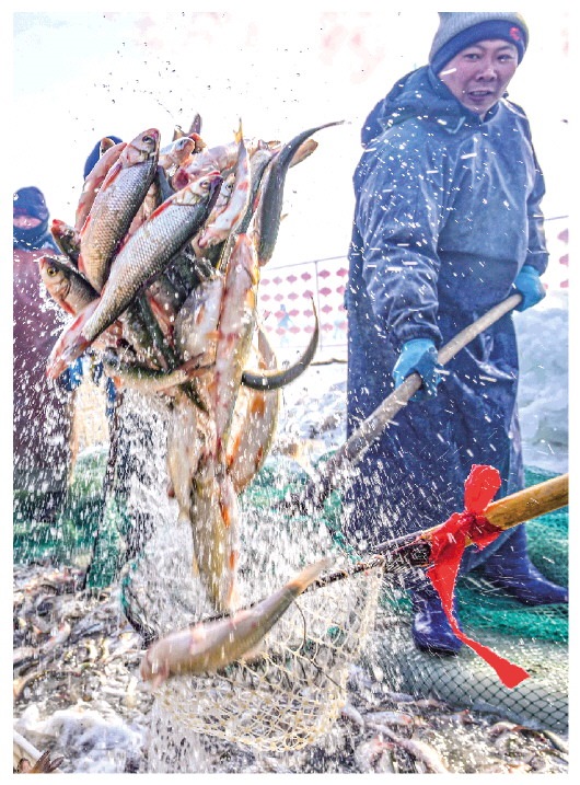 ▲1月13日,達(dá)里湖漁場的工作人員在撈魚裝箱。日前,內(nèi)蒙古達(dá)里湖冬捕旅游季在赤峰市克什克騰旗拉開帷幕。此次活動包括祭湖儀式、開湖捕魚、文藝展演等多個(gè)項(xiàng)目,吸引眾多游人前來觀看。新華社記者彭源攝