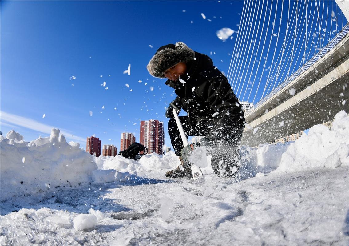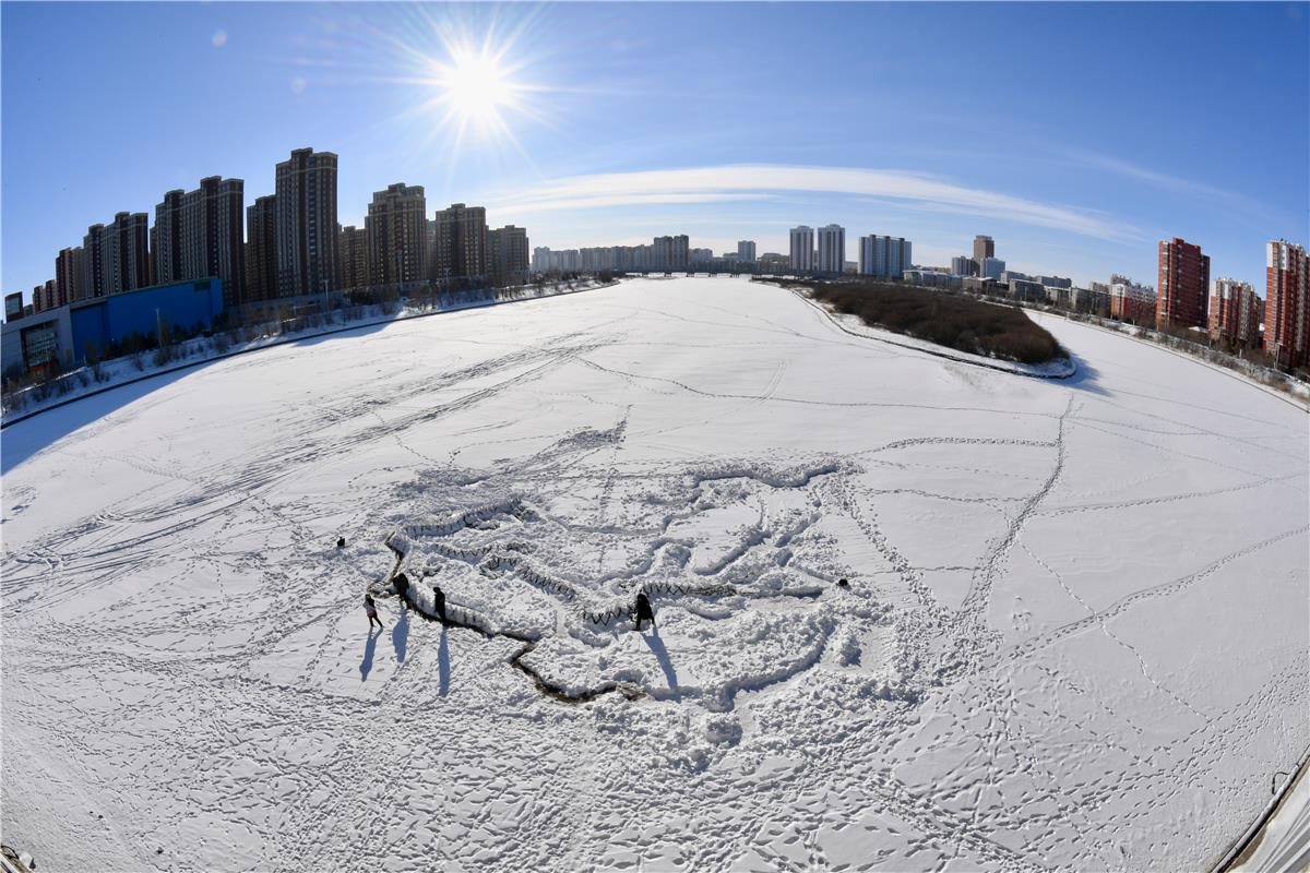 在伊敏河冰面上雕刻出