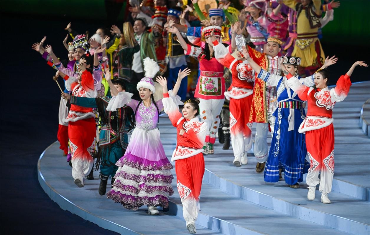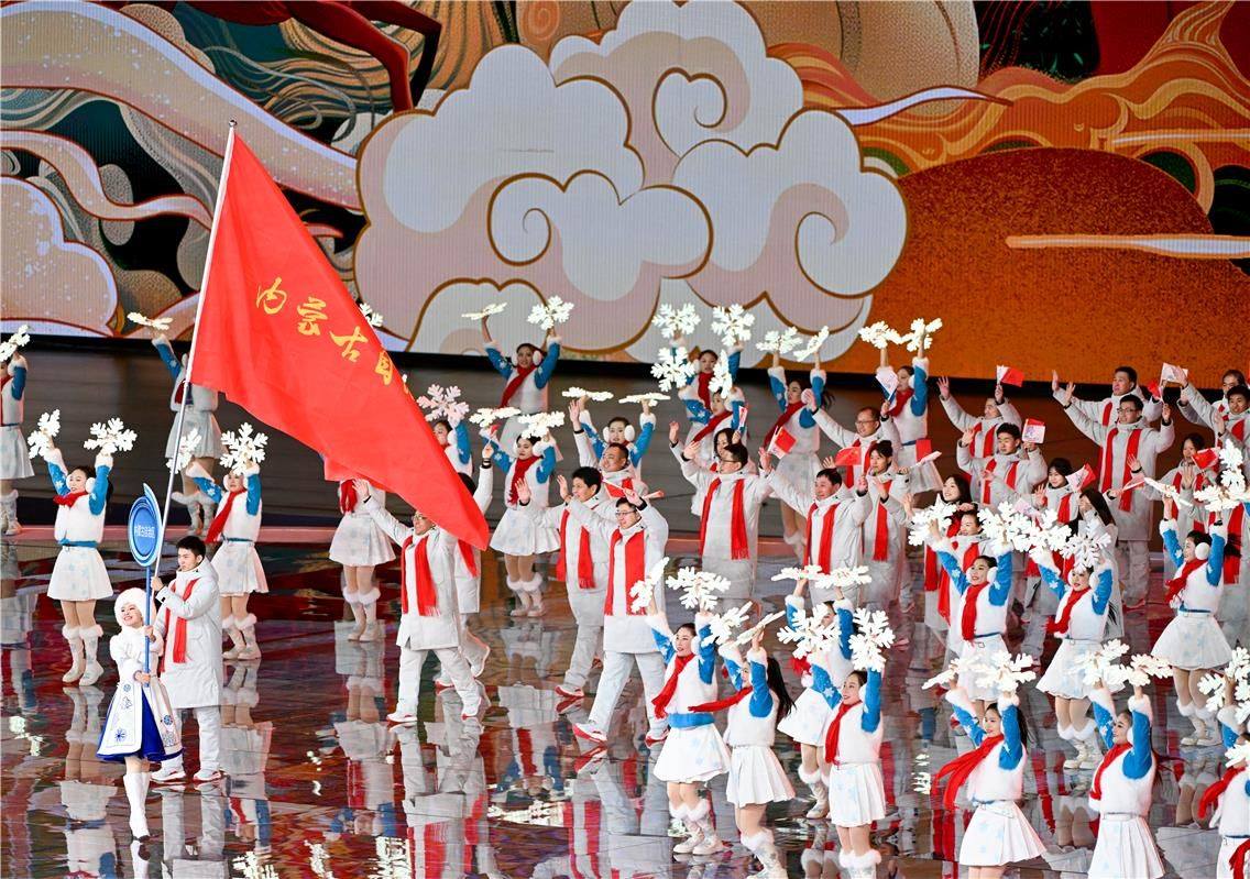 2月17日晚,第十四屆全國(guó)冬季運(yùn)動(dòng)會(huì)開(kāi)幕式在內(nèi)蒙古自治區(qū)冰上運(yùn)動(dòng)訓(xùn)練中心速滑館舉行。開(kāi)幕式分為開(kāi)幕儀式、文體展演兩大部分。