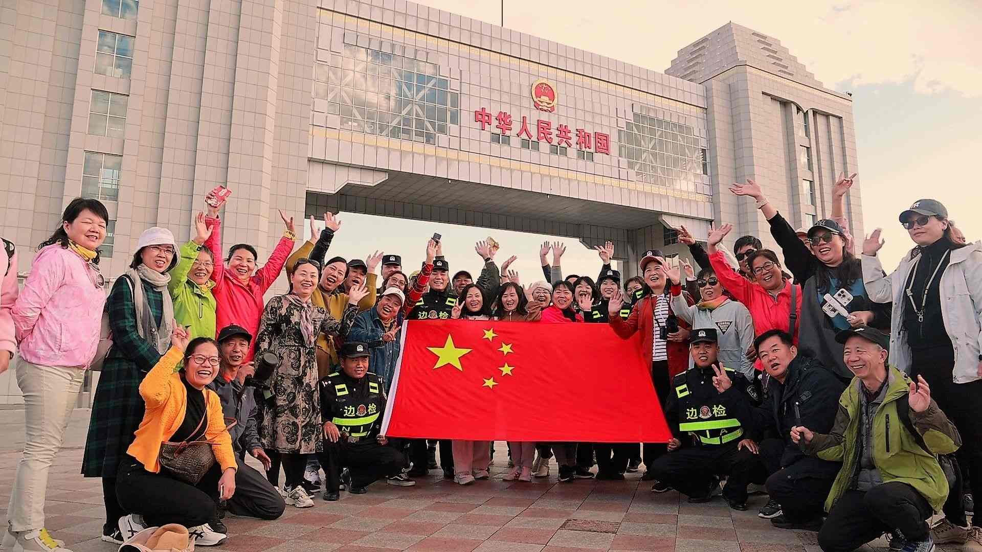 游客在滿洲里國(guó)門下合影。李新軍攝