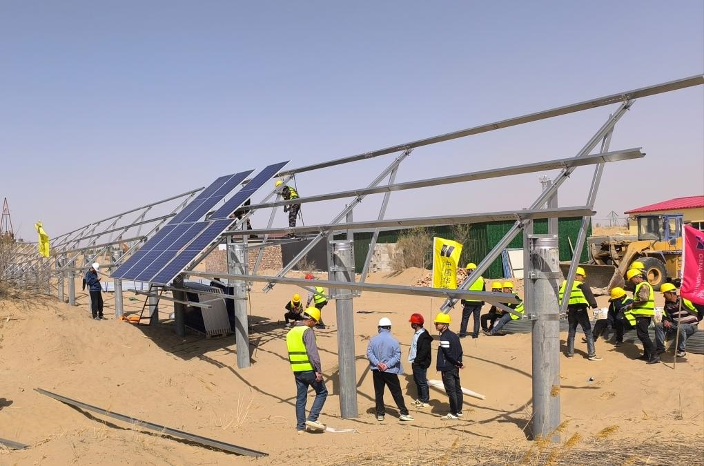 記者在新華林場民樂作業(yè)區(qū)看到,與其他作業(yè)區(qū)的造林治沙方式相比,這里既沒有栽樹,也沒有種草,而是在沙地里“栽”下了一個個水泥樁。葛文斌告訴記者:“這里是防沙治沙和風(fēng)電光伏一體化工程項目區(qū)。‘栽’水泥樁就是為后期安裝光伏板、建設(shè)光伏電站做準(zhǔn)備。在光伏板上發(fā)電的同時,我們還可以在光伏板下種植固沙植物,幫助地表植被恢復(fù),達(dá)到既能發(fā)電‘生金’又能實現(xiàn)沙化土地縮減的雙重功效?!保ㄓ浾呃钤破?、侯維軼)