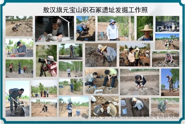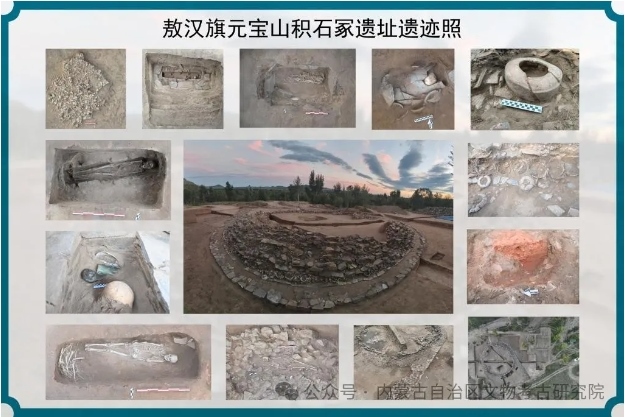2023年11月,位于赤峰市敖漢旗下洼鎮(zhèn)元寶山積石冢被盜,當(dāng)?shù)匚奈锕芾聿块T上報(bào)后,2024年初內(nèi)蒙古自治區(qū)文物考古研究院經(jīng)自治區(qū)文物局批準(zhǔn),以搶救性考古發(fā)掘向國家文物局申請并得以批準(zhǔn)。4月底,組隊(duì)對該地點(diǎn)及周邊開展調(diào)查并進(jìn)行了勘探。5月正式啟動發(fā)掘,截止目前已明確該地點(diǎn)為一處集墓葬建筑與祭祀建筑一體的紅山文化遺存。也是目前所知內(nèi)蒙古自治區(qū)唯一的一處南方北圓、南壇北冢的紅山文化晚期建筑遺存。