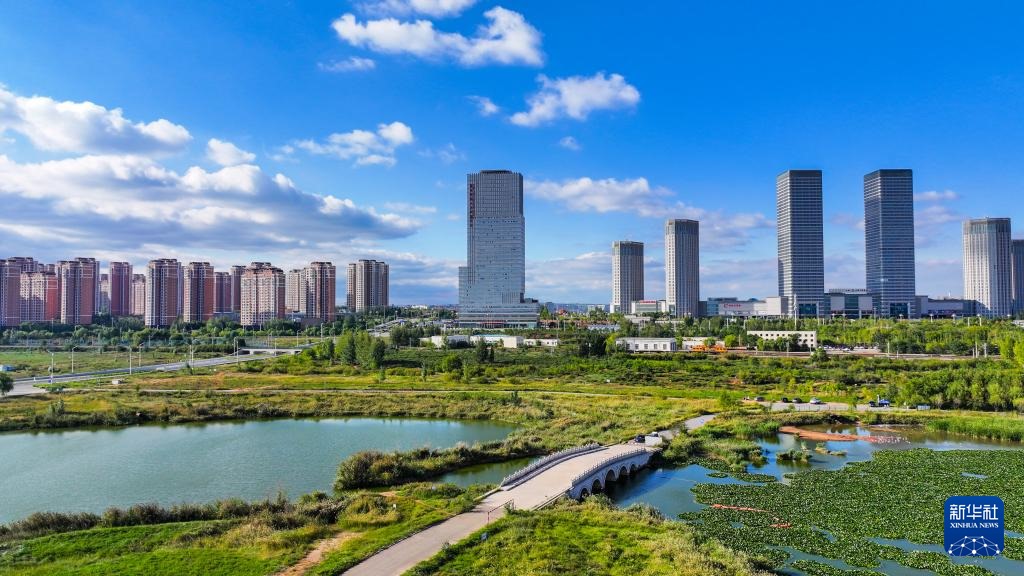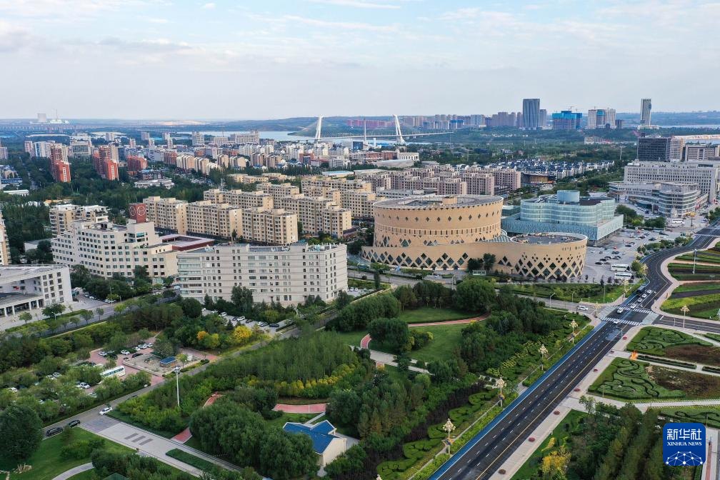 ???這是9月19日拍攝的鄂爾多斯市康巴什區(qū)中軸線(無人機(jī)照片)。