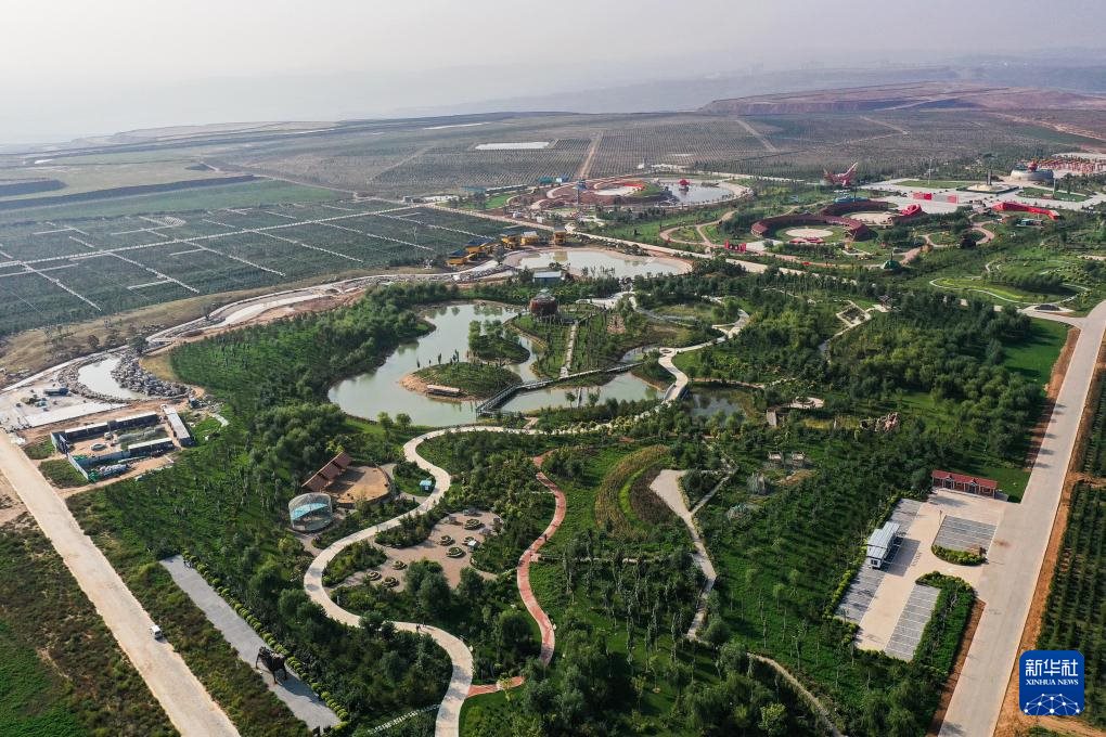 ??在位于內(nèi)蒙古鄂爾多斯市準(zhǔn)格爾旗的國(guó)家能源集團(tuán)準(zhǔn)能集團(tuán),煤礦復(fù)墾區(qū)樹木蔥蘢,已成為礦山生態(tài)旅游區(qū)(無人機(jī)照片,9月19日攝)。