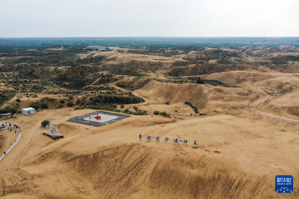 ??這是9月18日拍攝的位于鄂爾多斯市準(zhǔn)格爾旗境內(nèi)的庫(kù)布其沙漠神泉旅游區(qū)(無人機(jī)照片)。