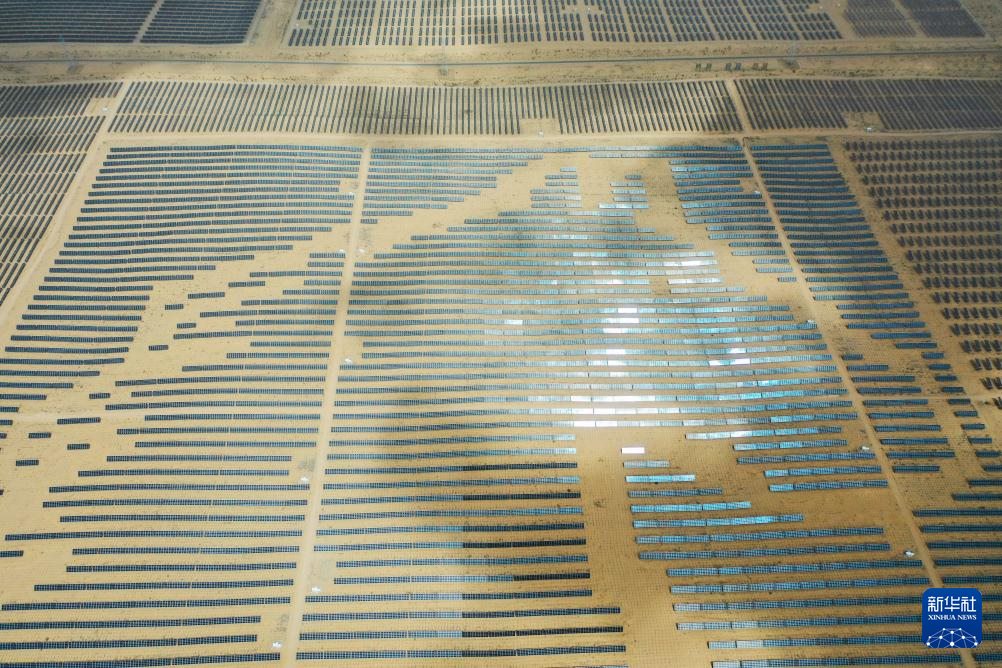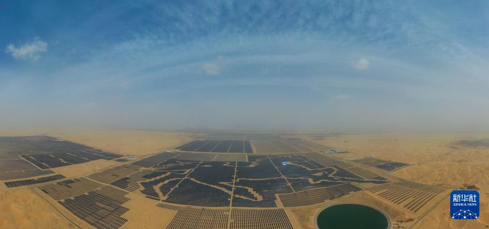 在內(nèi)蒙古自治區(qū)鄂爾多斯市境內(nèi)的庫布其沙漠里,一排排光伏板整齊地排列著,像是一幅藍(lán)色畫布在沙海中熠熠生輝。然而在過去,“黃沙遮天日,飛鳥無棲樹”是人們對這片沙海的印象。