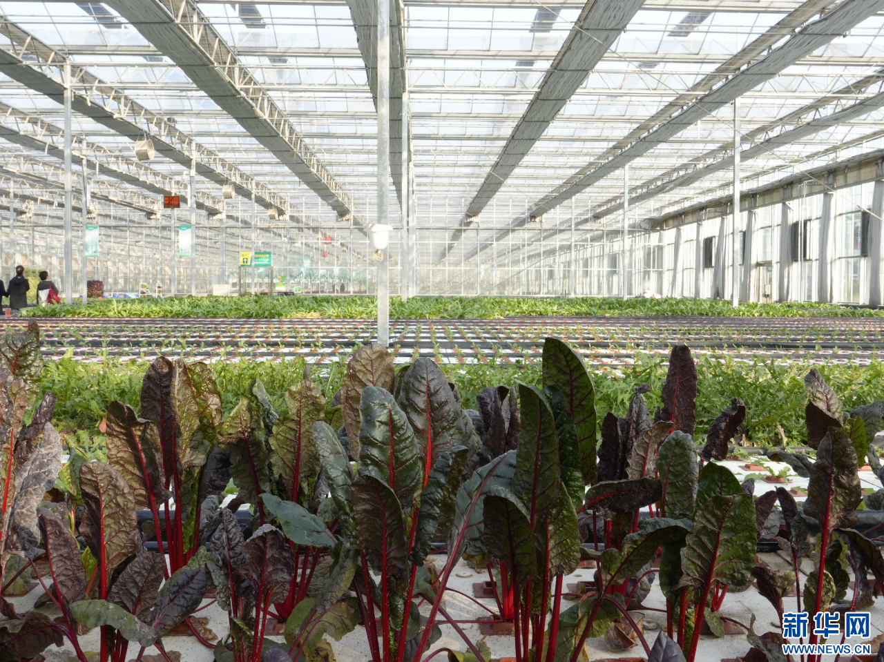 ??包頭市土右旗敕勒川現(xiàn)代農(nóng)業(yè)產(chǎn)業(yè)園智能玻璃溫室內(nèi)種植的蔬菜。新華網(wǎng)發(fā)(鄧雅鑫 攝)