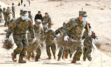 2025年5月6日《中國(guó)國(guó)防報(bào)》第1版刊發(fā)了《內(nèi)蒙古巴彥淖爾軍分區(qū)發(fā)動(dòng)民兵參與烏蘭布和沙漠治沙攻堅(jiān)戰(zhàn) 植樹(shù)造林戰(zhàn)“黃龍”》的文章,報(bào)道了連日來(lái),內(nèi)蒙古巴彥淖爾市民兵到烏蘭布和沙漠植樹(shù)造林。為植樹(shù)造林鎖住“黃龍”,當(dāng)?shù)剀娒衤?lián)手筑起了一道48公里長(zhǎng)的綠色屏障。據(jù)氣象部門數(shù)據(jù)顯示,近年來(lái),當(dāng)?shù)厣硥m暴、干熱風(fēng)、浮塵天氣年平均日數(shù)顯著下降。