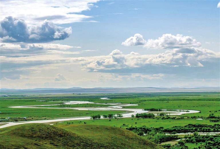 在額爾古納國(guó)家濕地公園,登上刻有“亞洲第一濕地”標(biāo)志的山頂觀景臺(tái),遠(yuǎn)處的山巒、近處蜿蜒流淌的根河與額爾古納市容市貌盡收眼底。