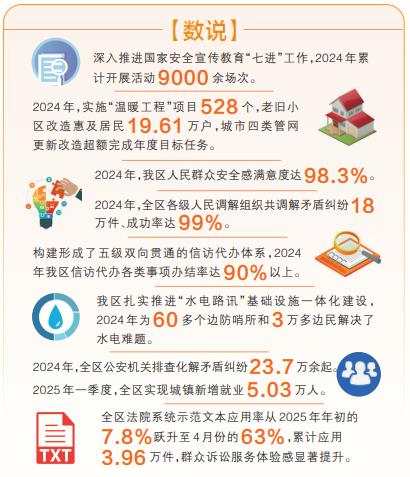 2024年,全區(qū)各級(jí)人民調(diào)解組織共調(diào)解矛盾糾紛18萬件、成功率達(dá)99%。全區(qū)信訪代辦各類事項(xiàng)辦結(jié)率達(dá)90%以上,一大批群眾急難愁盼事項(xiàng)得到及時(shí)就地解決。