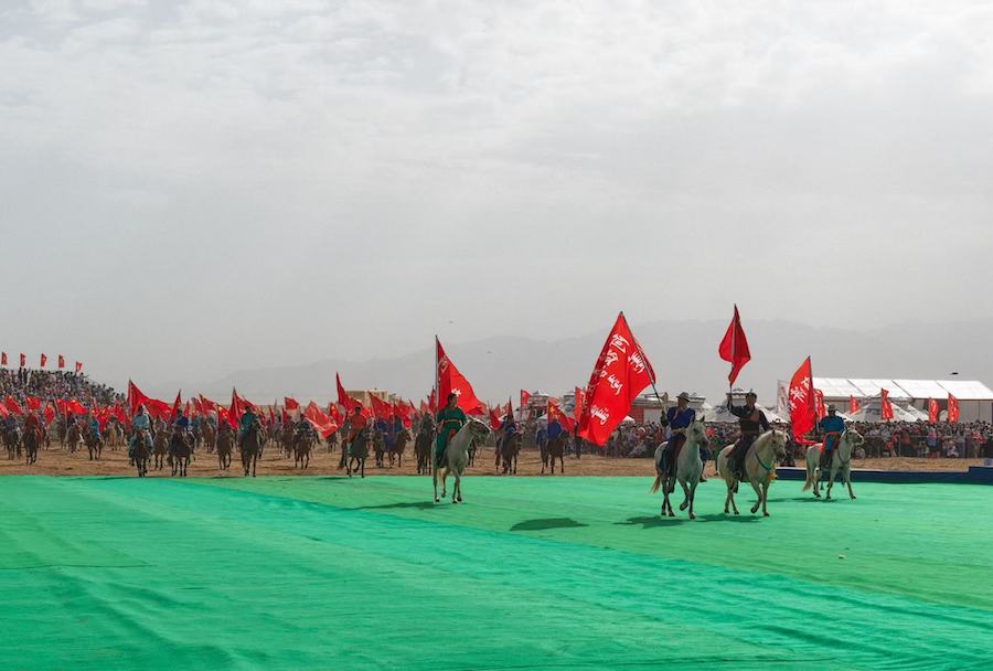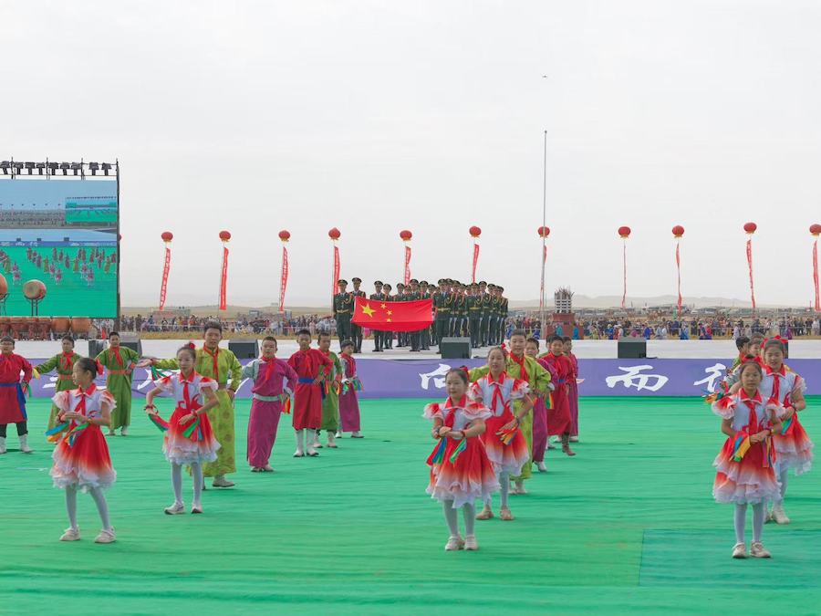 2025阿拉善那達(dá)慕開幕式上儀仗隊(duì)護(hù)送國旗走向場地