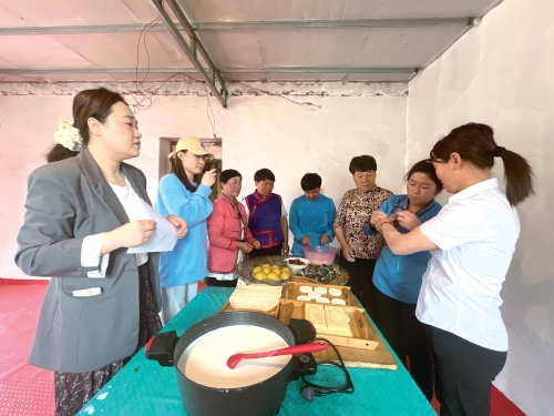 2025年端午節(jié)前,巴仁哲里木鎮(zhèn)宣傳委員、宣傳干事在寶日根嘎查拍攝蒙古族和漢族群眾一起包粽子、制作奶皮子的畫(huà)面。 農(nóng)民日?qǐng)?bào)·中國(guó)農(nóng)網(wǎng)記者 劉杰 攝