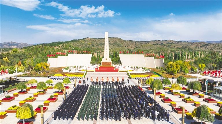 秋高氣爽,松柏蒼翠。烈士紀念碑廣場莊嚴肅穆,“人民英雄永垂不朽”八個金色大字在陽光下熠熠生輝。