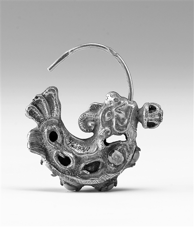 在遼代的文物遺存中,摩羯圖像廣泛見諸于各類器物上,從隨身佩戴的飾件到案頭陳設(shè)的器皿,從服飾上的精美紋樣到與宗教相關(guān)的器物,有摩羯形金耳墜、摩羯紋銀盤、摩羯紋銅鏡、摩羯紋鎏金繁花銀盞托、摩羯形白瓷燈、摩羯形注壺、摩羯紋緙絲草帽等。這些遍布于遼代各類器物上的摩羯形象,并非本土原生的文化符號(hào),其背后承載著跨越地域的各民族交往交流交融和文化融通互鑒的歷程。