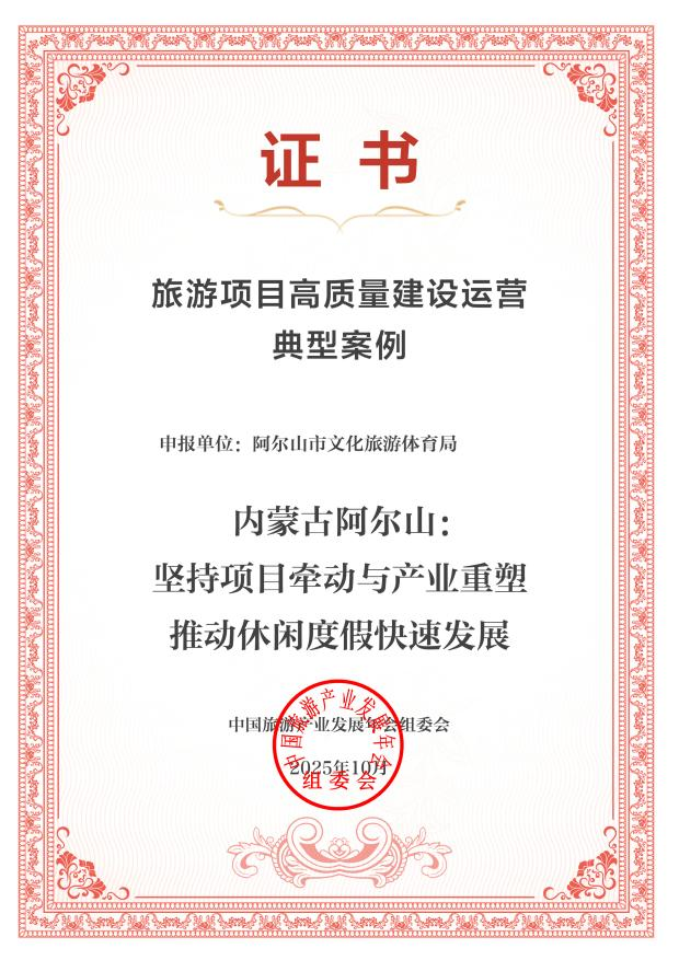 阿爾山市“堅持項目牽動與產(chǎn)業(yè)重塑推動休閑度假快速發(fā)展”案例成功入選2025旅游項目高質(zhì)量建設運營典型案例。