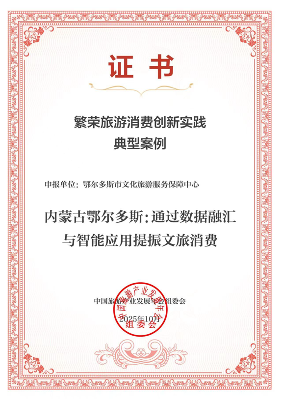 鄂爾多斯市“通過數(shù)據(jù)融匯與智能應用提振文旅消費”案例入選2025繁榮旅游消費創(chuàng)新實踐典型案例。