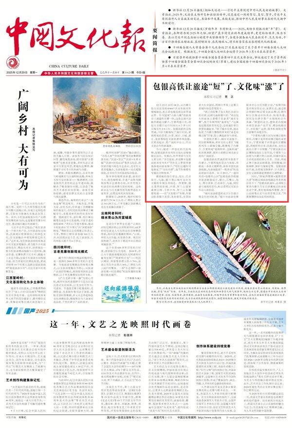 2025年12月29日,《中國文化報》第1版刊發(fā)了《包銀高鐵讓旅途“短”了、文化味“漲”了》的文章,報道了包銀高鐵的全線貫通,不僅大幅縮短了通行時間,更將兩地的草原、沙漠、湖泊、古城、酒莊、美食等特色文旅資源串珠成鏈,在更高起點、更廣闊的平臺上,開啟文旅合作的新篇章。