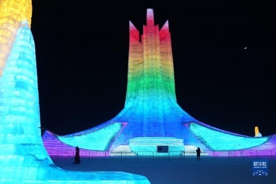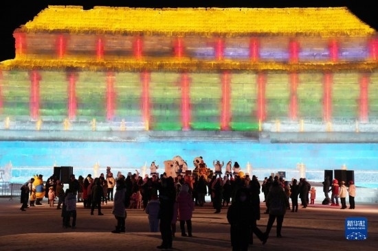 2月25日,游客在哈爾濱冰雪大世界園區(qū)游玩。