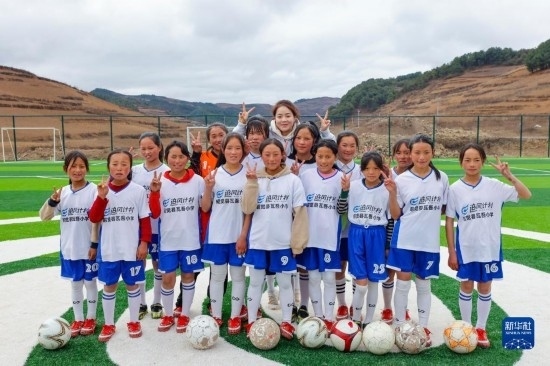 四川省涼山州昭覺(jué)縣瓦吾小學(xué)坐落于海拔約2700米的大涼山上,因?yàn)榈乩砦恢闷?、一年四季云霧繚繞而得名“云端小學(xué)”。校長(zhǎng)曲比史古2018年組建女足球隊(duì),希望通過(guò)足球讓這些大山里的女孩子收獲快樂(lè),也獲得更多人生可能性。過(guò)去幾年,孩子們都是在一片“手工自制”的泥地球場(chǎng)上訓(xùn)練,經(jīng)常受傷。得知瓦吾小學(xué)的情況后,中國(guó)足協(xié)、支付寶以及女足國(guó)腳們決定一起為這支校園女足隊(duì)捐贈(zèng)一座“玫瑰夢(mèng)想球場(chǎng)”。2022年底,全國(guó)第二座中國(guó)女足主題球場(chǎng)——“玫瑰夢(mèng)想球場(chǎng)”在大涼山上落成。