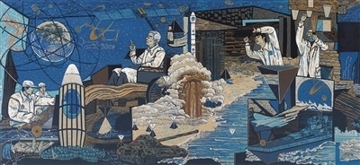 “大國重器”亮點紛呈,脫貧攻堅成就舉世矚目,這些時代新象都在展覽中得到體現(xiàn)。例如,張輝君油畫《蛟龍入?!?、沙永匯版畫《北斗》等作品,折射出我國科技自主創(chuàng)新能力不斷提升??鬃现袊嫛陡瓯跒泛蛣⒃浦袊嫛睹利愢l(xiāng)村》,分別借助植樹造林的人物群像塑造、新農(nóng)村景觀的宏闊描繪,展現(xiàn)了彪炳史冊的人間奇跡。
