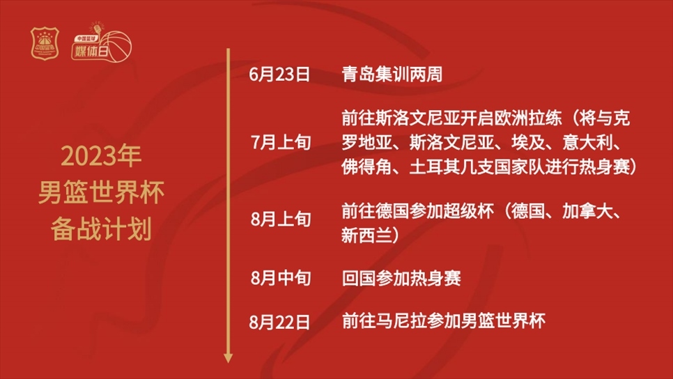 談到中國男籃備戰(zhàn)世界杯的具體規(guī)劃時,徐濟(jì)成表示:“球隊將于6月23日在青島開啟為期兩周的集訓(xùn);7月上旬前往斯洛文尼亞開啟歐洲拉練,將與克羅地亞、斯洛文尼亞、埃及、意大利、佛得角、土耳其幾支國家隊進(jìn)行熱身賽;8月上旬前往德國參加超級杯,對手包括德國、加拿大、新西蘭;8月中旬回國參加1-2場熱身賽后,將前往馬尼拉參加男籃世界杯。”