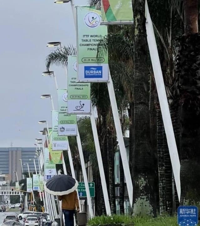 德班街頭燈桿掛起本次世乒賽宣傳海報(bào)。